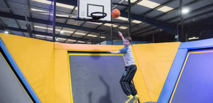 Experience the thrill of our Main Court, complete with Angular trampolines, a dodgeball area, and individual trampolines. Take on trampoline lanes for impressive leaps into a foam pit or to slam-dunk a basketball. Our venue offers core-strengthening workouts for adults and a fun energy outlet for kids, making us the ultimate spot for events, birthdays, and fitness classes. Burn up to 1,000 calories per hour through high-intensity, low-impact cardio while enjoying the longest trampoline runway, VR Gaming, and wall-to-wall trampoline arena.